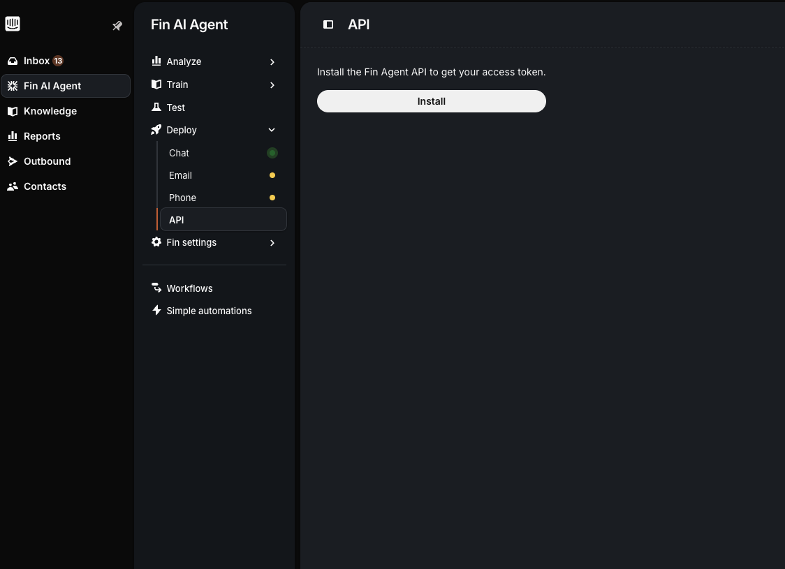 - In your Intercom workspace, go to Fin AI Agent from the sidebar.