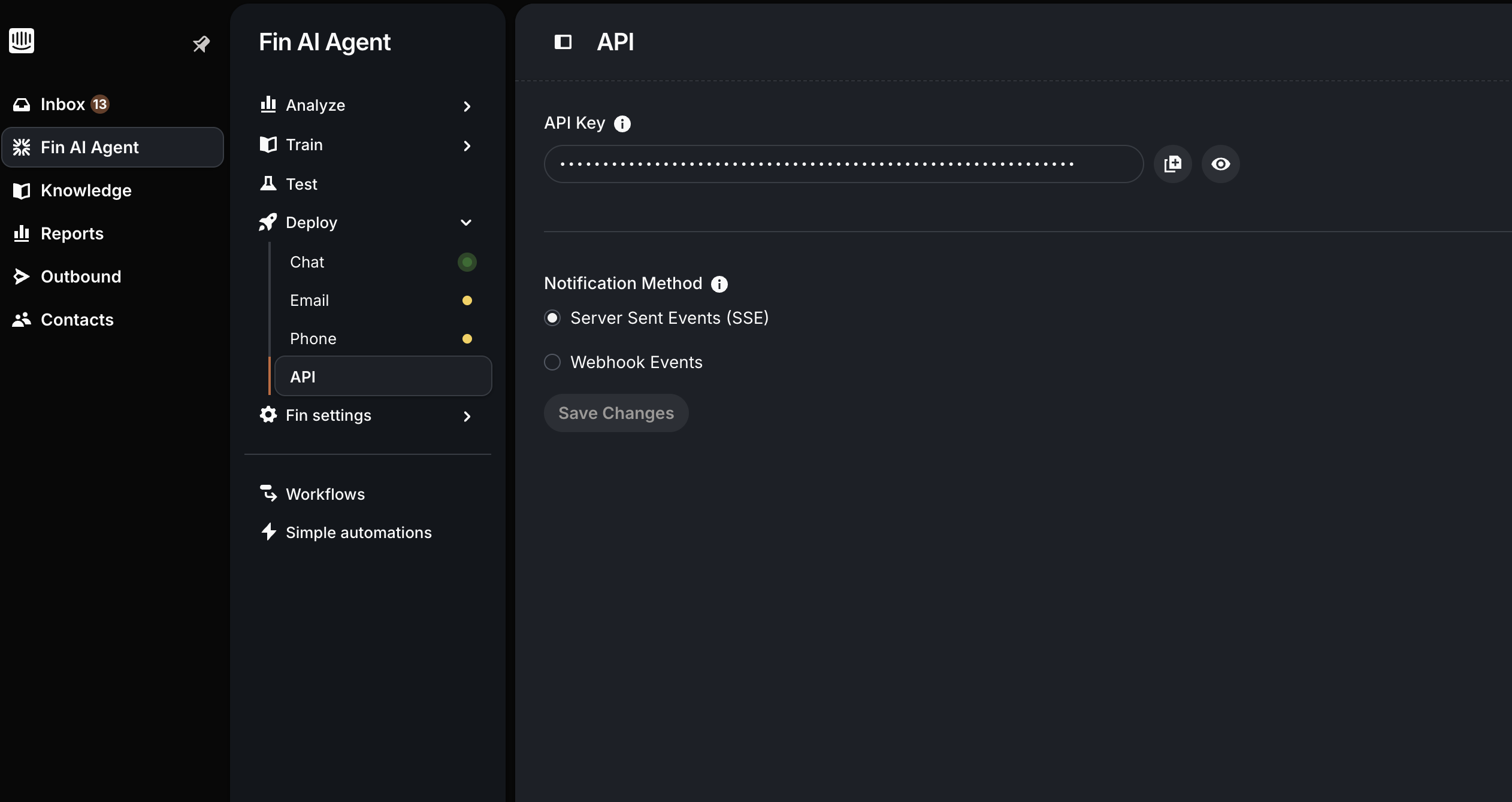 Fin Agent API tokens have significantly reduced permissions compared to general-purpose API keys. This means: